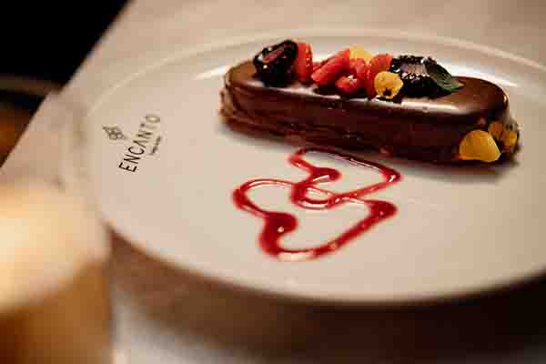 Uno de los grandes diferenciadores de Encanto es su innovador uso de la tecnología visual. Sus pantallas se convierten en portales que transportan al comensal a distintos escenarios, estimulando y acompañando la pasión, el romance y la celebración del amor. Con proyecciones en 360° y 12 pantallas de alta definición, el espacio se transforma constantemente, creando atmósferas que evolucionan en sincronía con cada platillo servido.